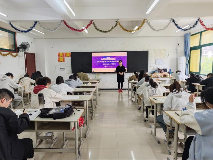 (通讯员孙秀君胡巍)4月12日上午,2026年全国大学生英语竞赛(NECCS)湖北赛区初赛在我校顺利举行。本次比赛由教务处指导、公共课部承办,来自各二级学院的200余名优秀学子同场竞技。